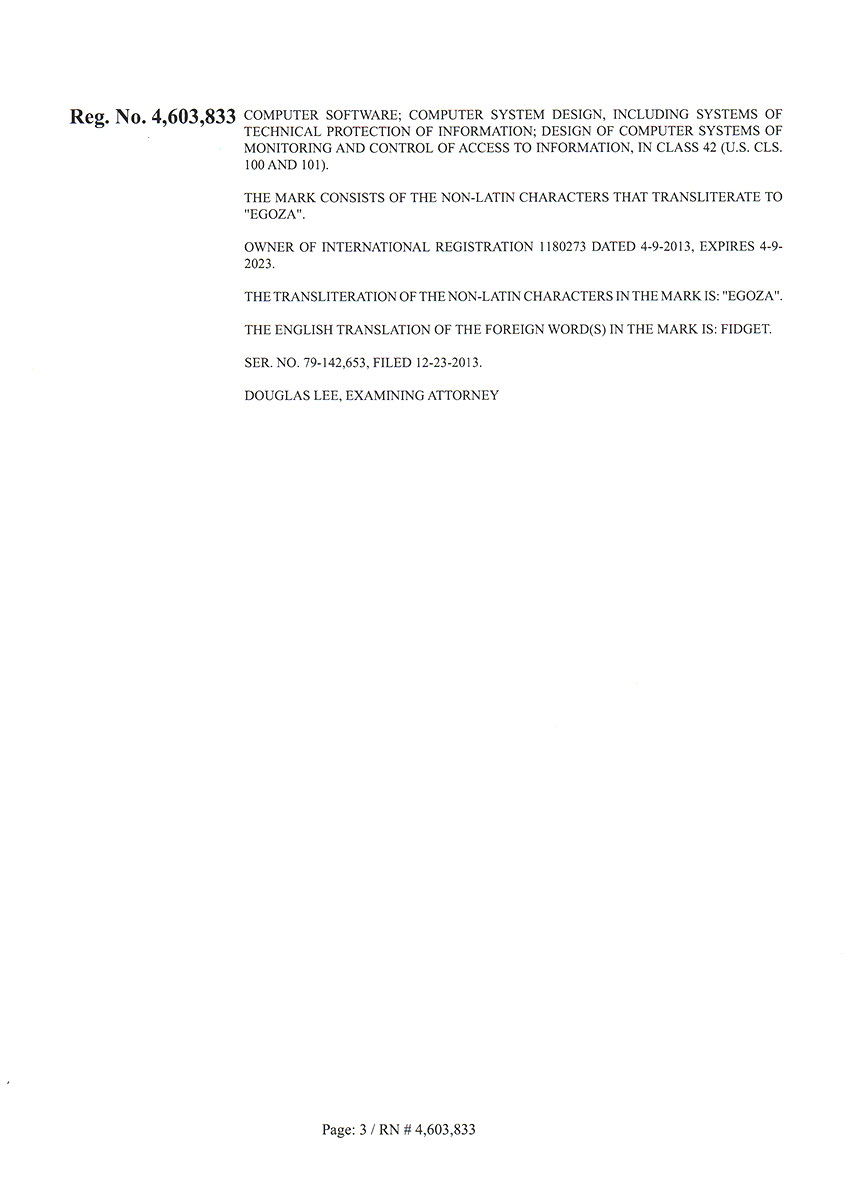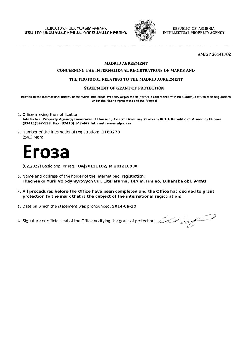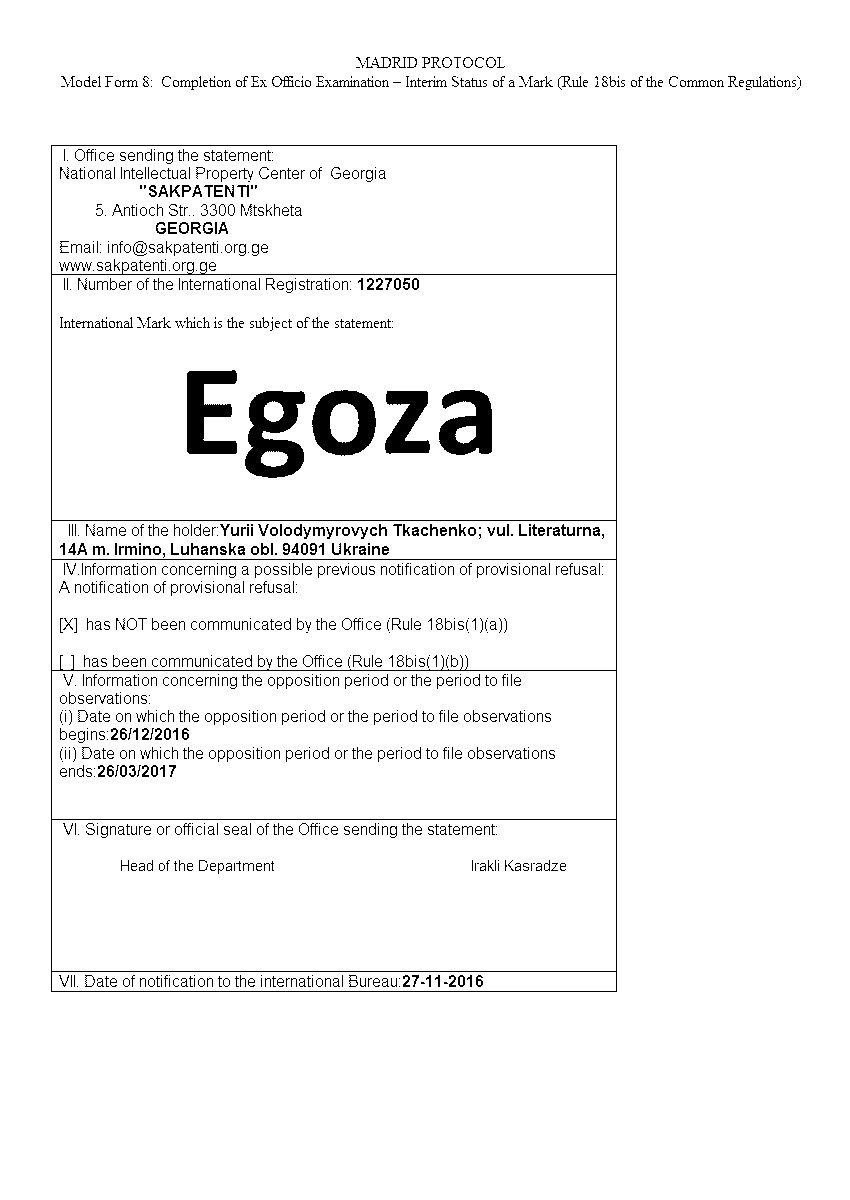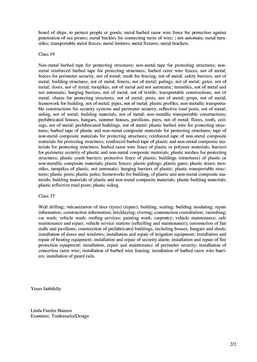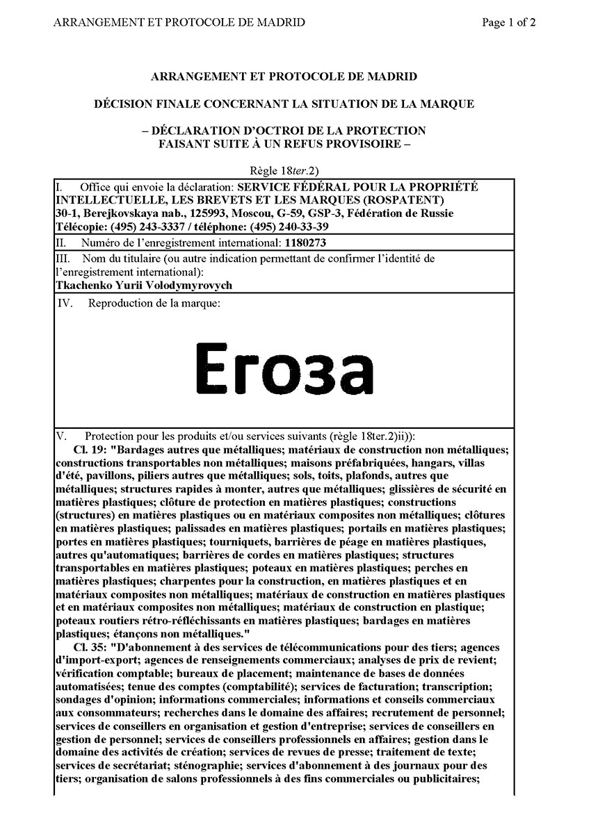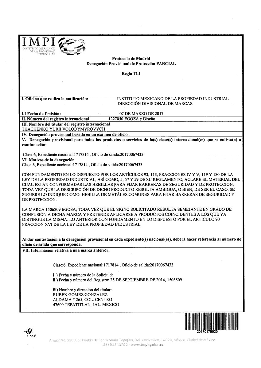Торговая марка Егоза зарегистрирована в 99 странах мира по Мадридской системе. Эта торговая марка используется для обозначения широкого ассортимента изделий, предназначенных для создания инженерной защиты периметра объектов. К ним относится колючая лента Егоза, армированная колючая лента Егоза-Стандарт, Егоза-Кайман, Егоза-Аллигатор и Егоза-Супер, а также различные типы колюче-режущих заграждений – плоские, спиральные, пирамидальные, мобильные и другие заграждения Егоза.